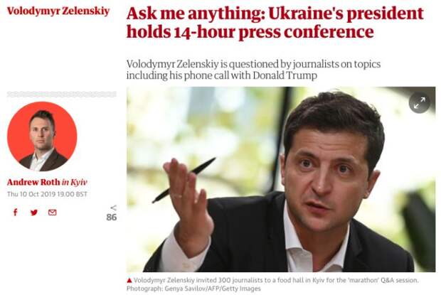 Украина вернулась на первые полосы мировых СМИ – сенсация за сенсацией. Не успели журналисты написать всё, что они думают по поводу скандала с телефонным разговором между президентами США и Украины и подписания Киевом «формулы Штайнмайера», как появляется очередная новость – необычный пресс-марафон Зеленского длительностью в 14 часов.
