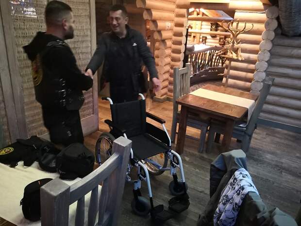 — Посмотрели репортаж из Саханки, где волонтер Андрей Лысенко, рассказывает о судьбе девушки, прикованной к старенькой инвалидной коляске, — рассказывает через переводчика улыбчивый Ян Райдел в футболке «Вежливые люди». – Мы хотим оказать материальную помощь жителям передовой, а этой милой девушке привезли новую современную коляску, чтобы хоть как-то облегчить ее жизнь. Мы поддерживаем Донбасс с 2014 года, возрождение фашизма в Украине – это страшно, мир обязан это осуждать.